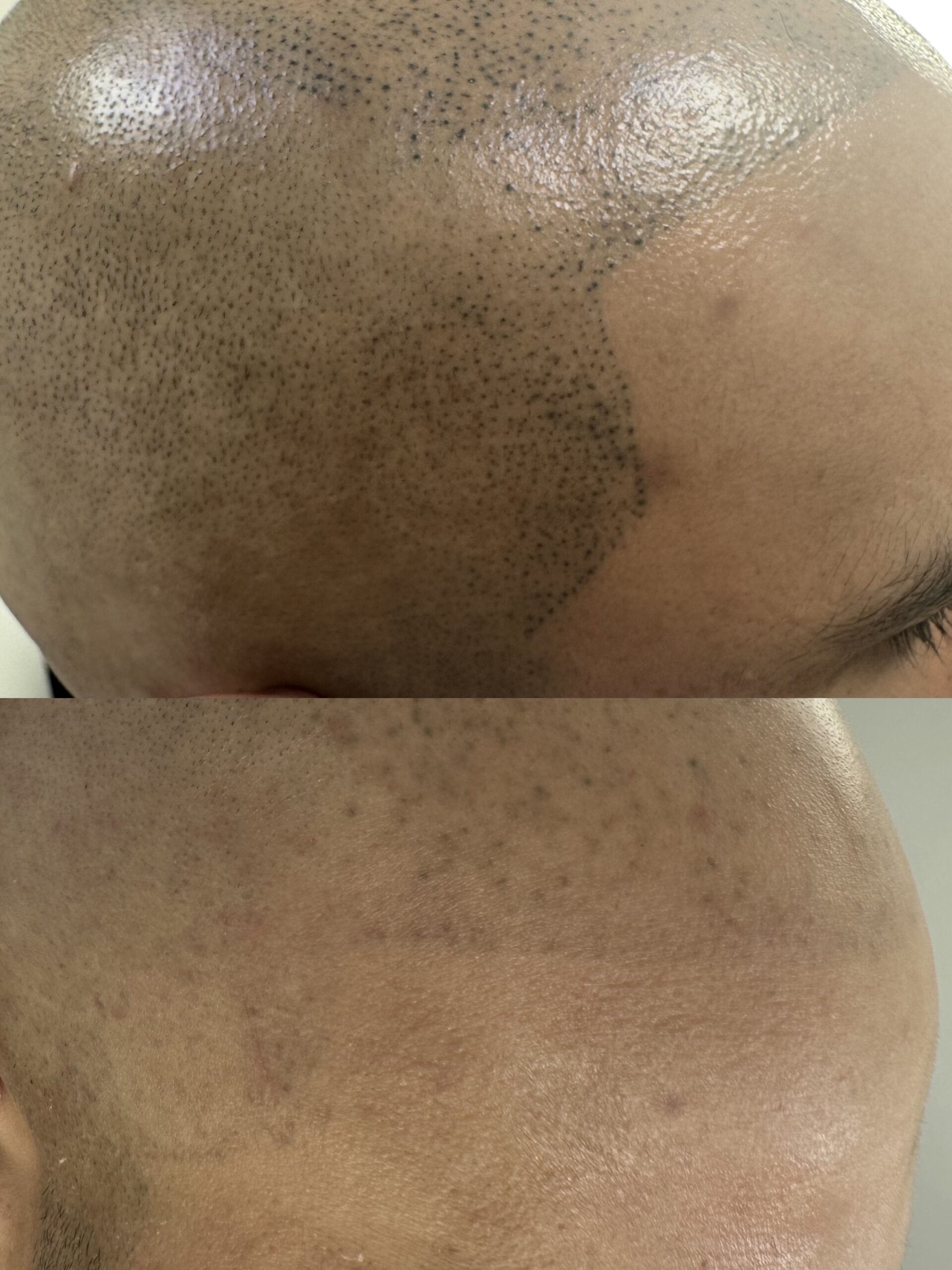 Au même titre que les soins du visage, il est tout à fait possible d’atténuer ou de faire complètement disparaitre une tricopigmentation dont le contour ne correspond pas à la limite naturelle du cuir chevelu ou dont la coloration a changé. Les pigments utilisés sont généralement fins, ce qui permet une élimination rapide au laser et une différence notable dès la première séance. Nos lasers picosecondes sont sans danger pour les bulbes pileux, et ne présentent donc aucun risque pour les cheveux présents dans la zone à traiter. Il n’est d’ailleurs pas nécessaire de les raser.
